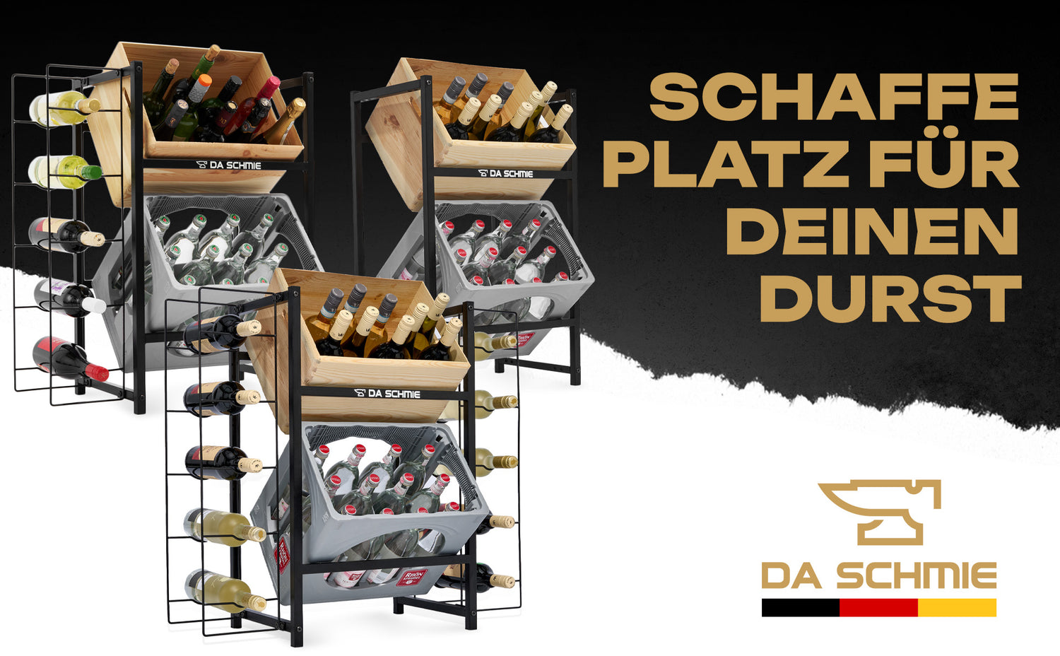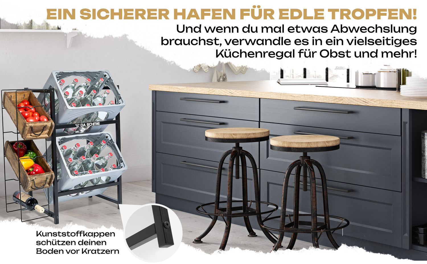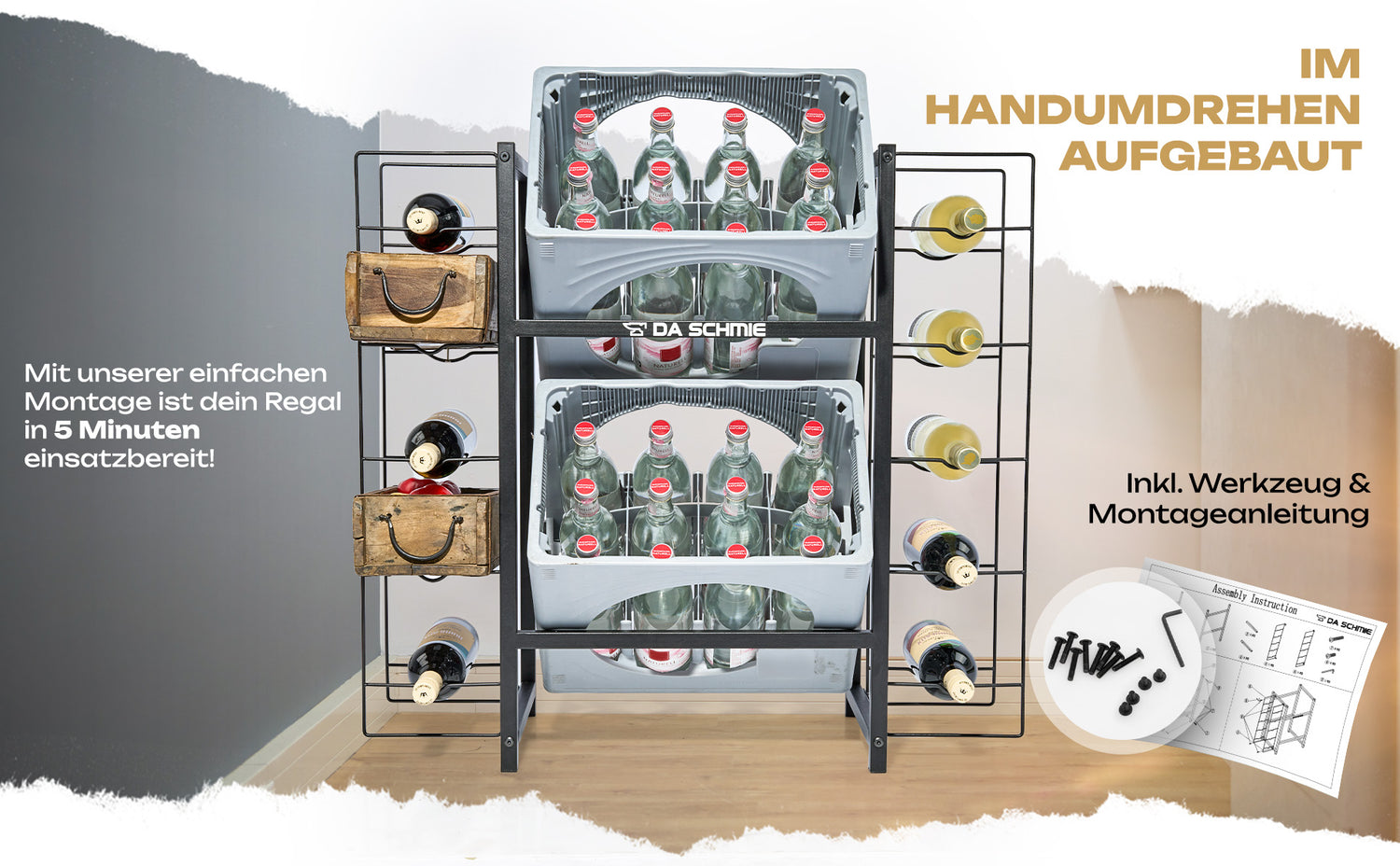 Getränkekistenregal für 2 Getränkekisten und 5 Weinflaschen